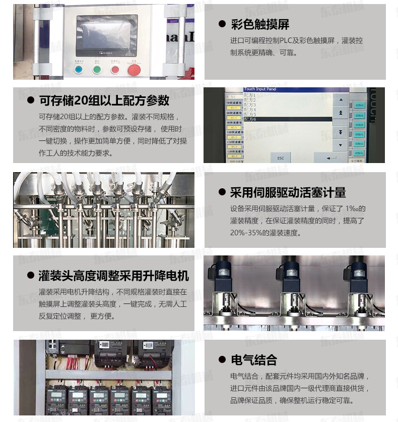 2、本機由可編程控制器(PLC)配合智能觸摸屏(人機界面)控制,人性化的設(shè)計使調(diào)整灌裝量及修改各種參數(shù)等操作均十分簡單、快捷、直觀;