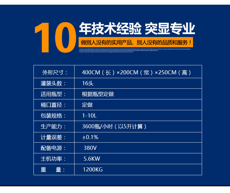 3、摒棄了傳統(tǒng)夾瓶口灌裝方式,采用下潛式灌裝下料口設(shè)計,邊灌邊提,避免了灌裝速度快產(chǎn)生細小水珠噴濺污染瓶口的現(xiàn)象產(chǎn)生。配合多段式快慢速灌裝,可以保障高速灌裝時全速灌裝,又可有效解決氣壓過高快速灌裝時泡沫溢瓶現(xiàn)象,變頻控制更,自我保護更安全,穩(wěn)定,延長設(shè)備使用壽命。