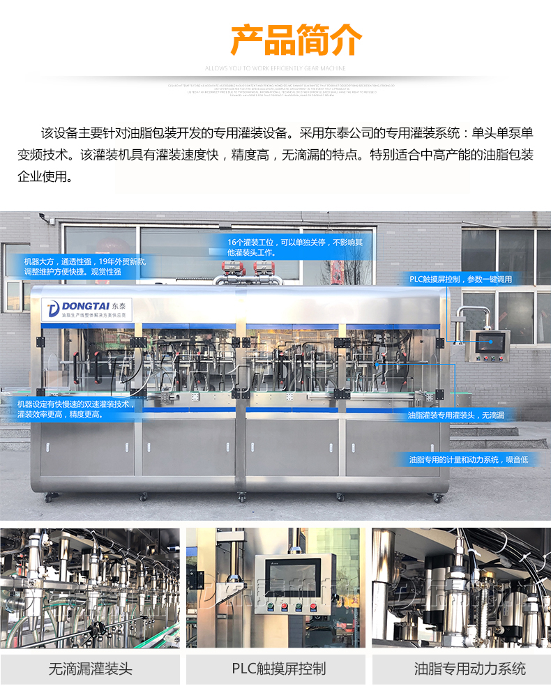 4、采用度伺服控制,用旋轉(zhuǎn)編碼器代替?zhèn)鹘y(tǒng)的脈沖發(fā)生器,抗干擾能力強,整機運行更穩(wěn)定。進口可編程控制PLC及彩色觸摸屏,灌裝控制系統(tǒng)更、可靠。