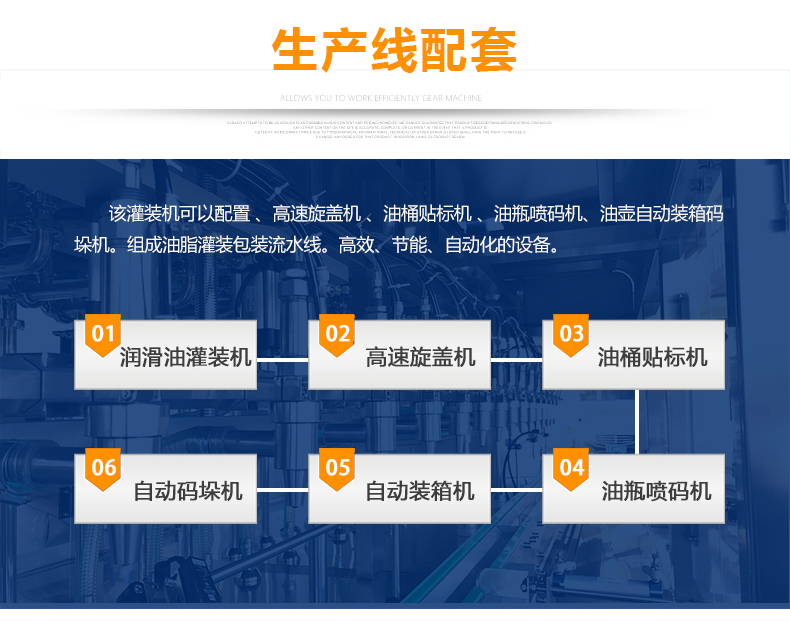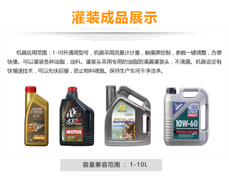 該大型潤滑油灌裝機采用容積式計量灌裝原理,適用于各種規(guī)格(1-5L)的液體肥等液體灌裝。設(shè)備采用伺服驅(qū)動活塞計量,保證了 1‰的灌裝,在保證灌裝的同時,提高了 20%-35%的灌裝速度,操作簡單,維護方便,節(jié)省人工成本,生產(chǎn)效率更高。