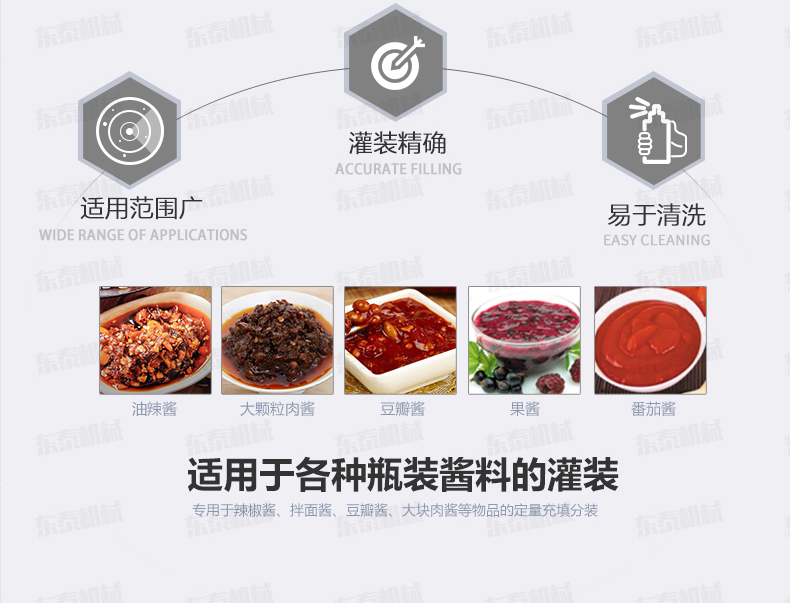 醬料灌裝機(jī)擁有穩(wěn)定性牢靠、機(jī)械自動化水平高,相比較同種產(chǎn)品擁有更長的使用年限,維護(hù)簡單,整線中各設(shè)施的協(xié)調(diào)性、銜接性強(qiáng),整線設(shè)計構(gòu)思合理等特點。灌裝設(shè)備運用的系統(tǒng)架構(gòu)符合了量產(chǎn)化、集成化加工的要。灌裝設(shè)備在參照類似品的根本上進(jìn)行改善設(shè)設(shè)計構(gòu)思,醬料防滴防漏灌裝頭在灌裝環(huán)節(jié)中不影響瓶口及瓶體,便于后期的旋蓋和貼標(biāo)步驟。醬料灌裝機(jī)運用橫推料的方式,減少了下料斗到灌裝頭的間隔,提高了灌裝速率,更關(guān)鍵的是解決了含油量大的原材料在灌裝環(huán)節(jié)中出現(xiàn)的有的瓶油多,有些瓶醬多的灌裝難.,進(jìn)一步提高了灌裝精確度。